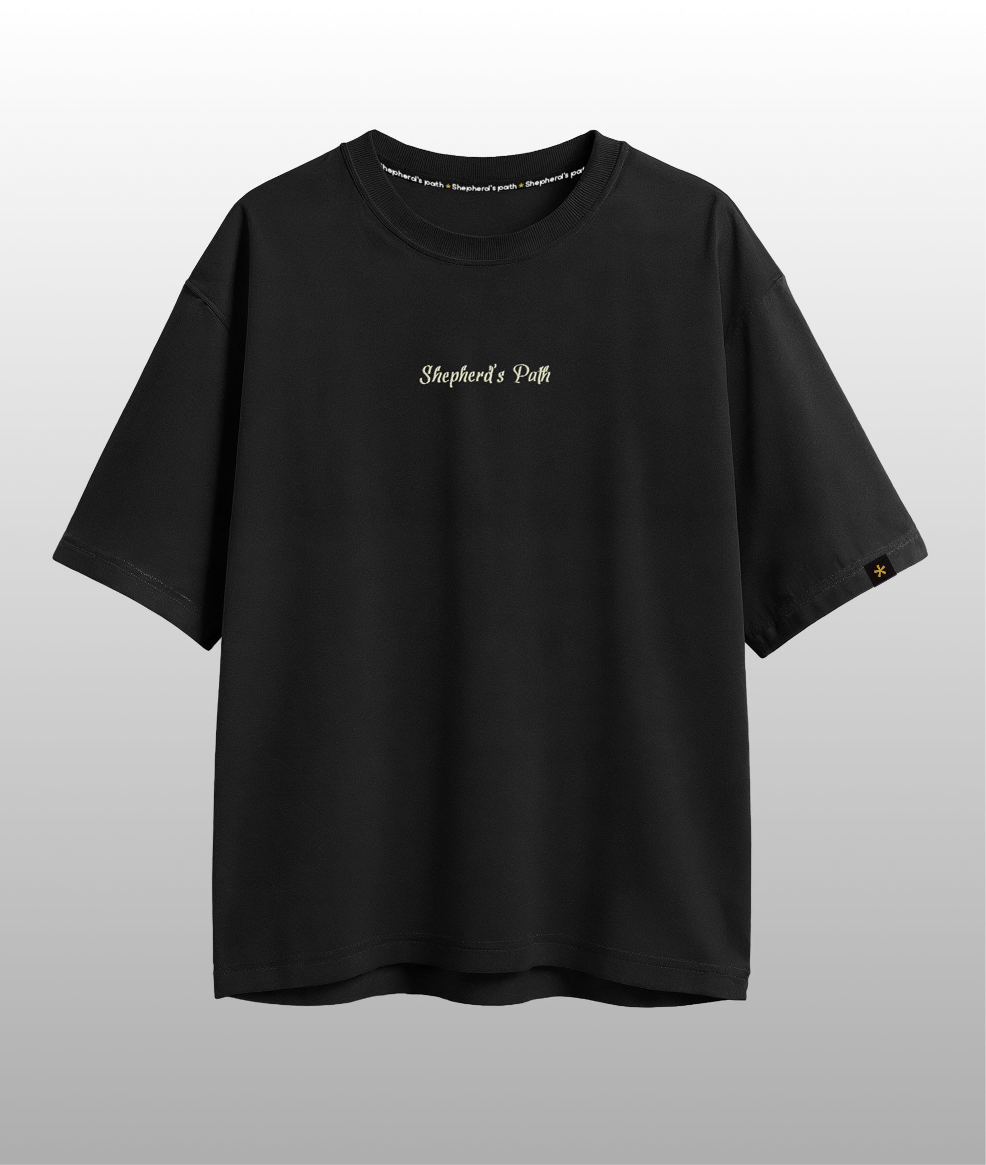 Crafted in premium 240 GSM French terry fabric, this oversized fit t-shirt delivers exceptional softness, comfort, and breathability. The loop knit construction ensures durability with a structured drape that maintains its shape wear after wear. The unique twill canvas back panel adds textural contrast and visual interest, while script-style embroidery on front and back brings refined, handcrafted detail. Perfect for casual wear, streetwear styling, or everyday comfort, this graphic t-shirt works seamlessly with jeans, joggers, or shorts. A statement piece for those who value both premium quality and meaningful design.