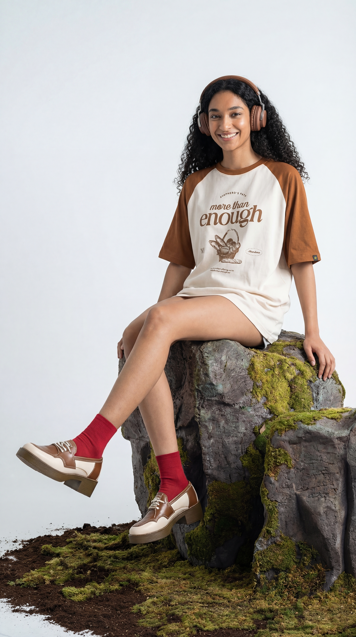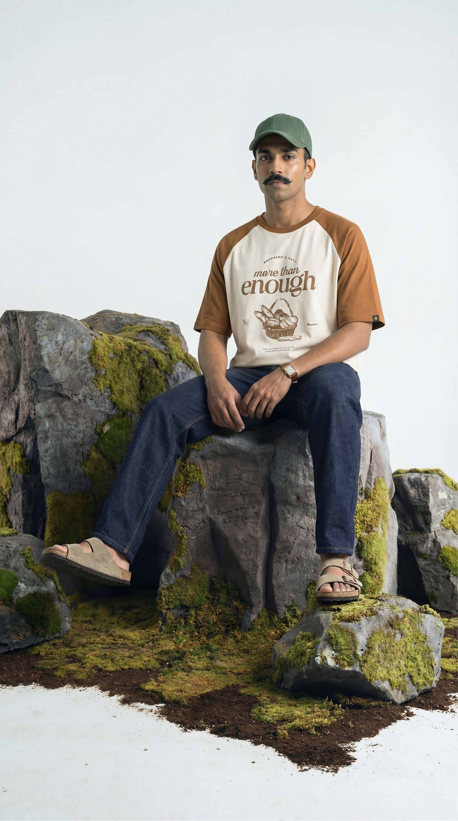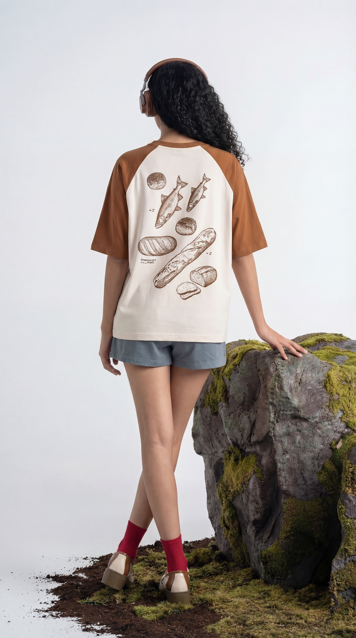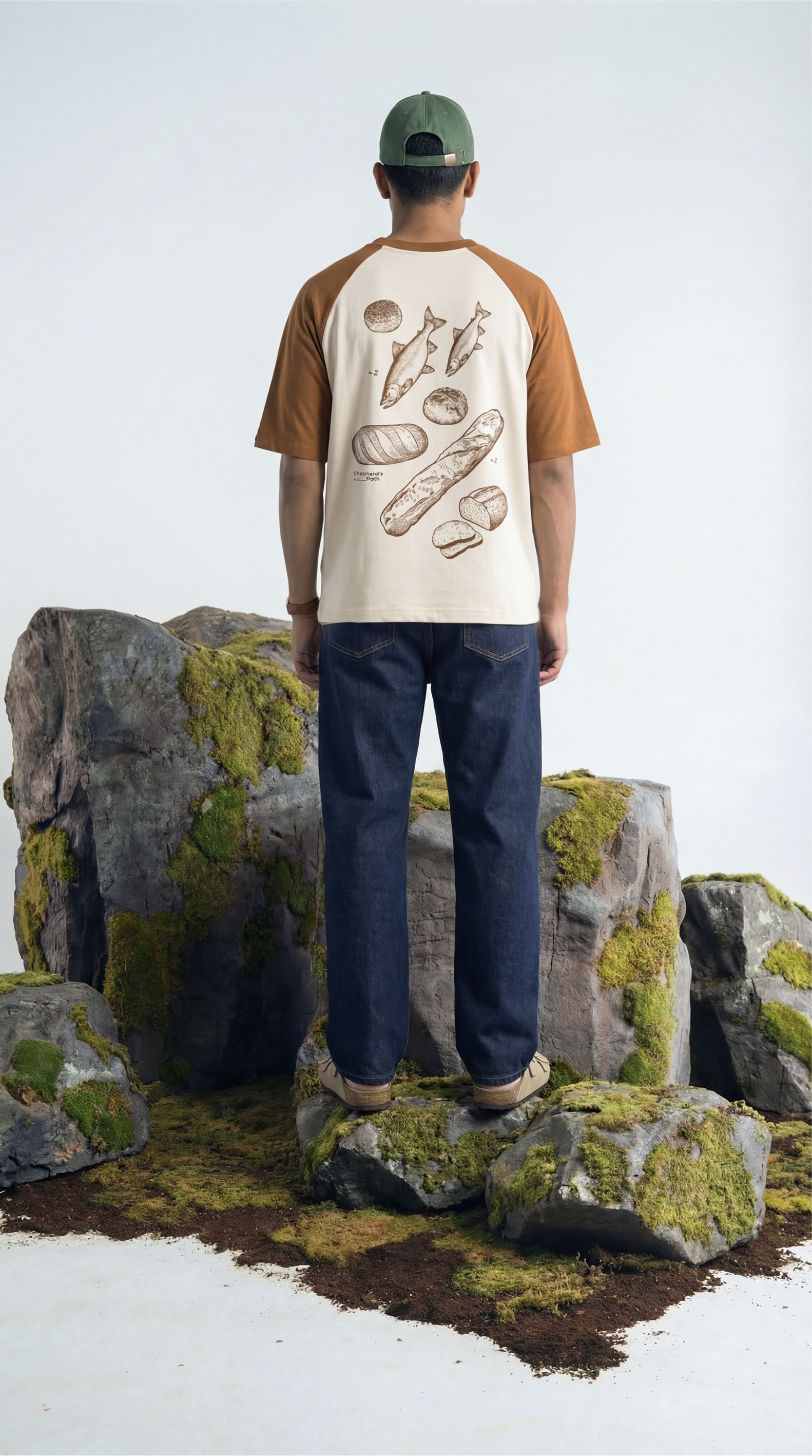More than Enough is a premium unisex oversized baseball-style t-shirt that celebrates abundance, gratitude, and the power of small acts multiplied into extraordinary blessings. This graphic tee draws inspiration from timeless tales of miraculous provision, where scarcity transformed into plenty through faith and generosity. The design features a beautifully rendered illustration of a bread basket and fish in screen print, accompanied by the word "abundance" and the meaningful phrase "even a small offering can be multiplied into abundance." The unique colorway pairs a soft peach body with rust brown sleeves, creating a vintage baseball tee aesthetic that's both nostalgic and contemporary.